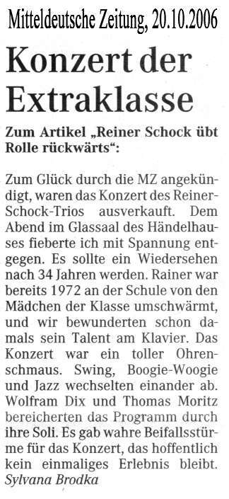 Mitteldeutsche Zeitung, 20.10.2006 - Erfolgsfeedback erst nach 34 Jahren!