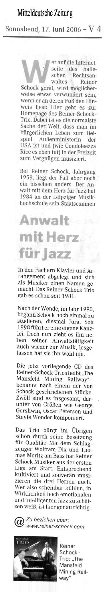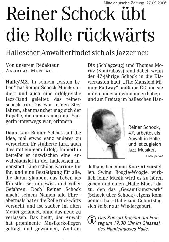Mitteldeutsche Zeitung, 27.09.2006 - Hallescher Anwalt wird Jazzpianist