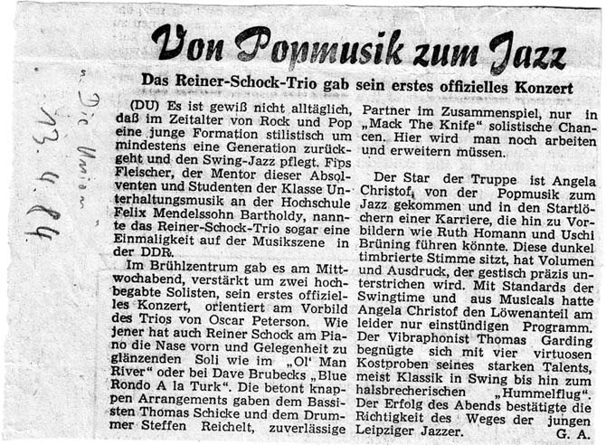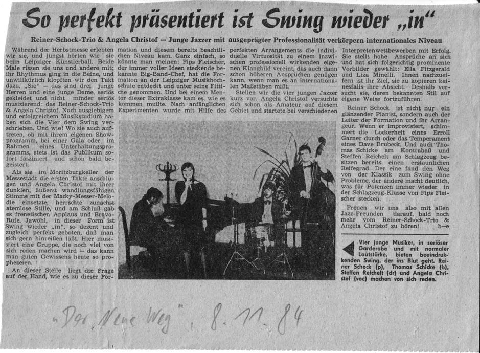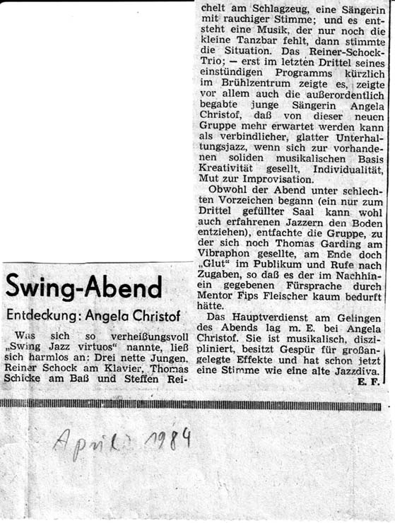 Entdeckung April 1984 - Angela Christof & Reiner-Schock-Trio